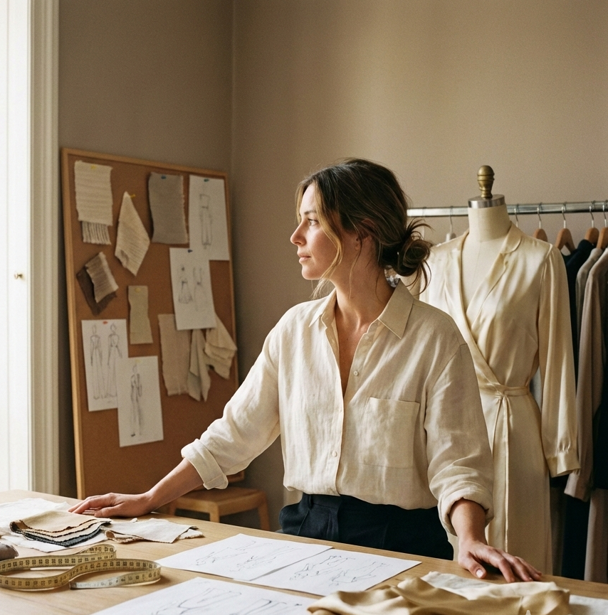 Chaque textile de notre vestiaire est rigoureusement choisi pour sa durabilité et son tombé irréprochable. Nous privilégions des textures nobles comme le jacquard sculptural, la soie technique ou le coton premium pour garantir une opacité totale et un confort absolu au quotidien.